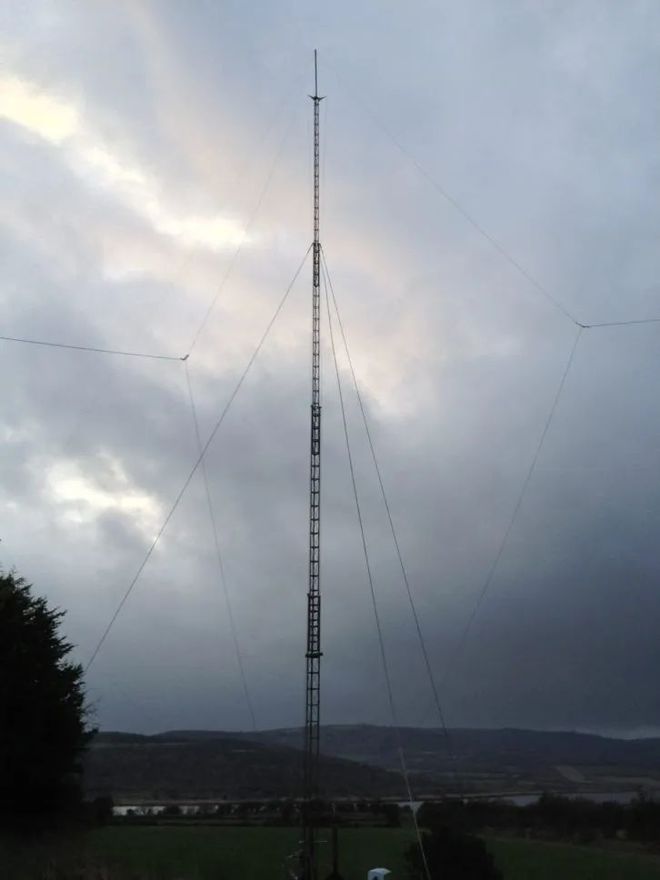 “喇叭裙是围绕塔的一组对称间隔的电缆,它们在塔顶部附近电气连接,沿着类似于顶部拉索的路径从塔向外延伸,然后在塔架下方大约一半处向塔架底部回转。”Kintronic实验室高级工程师考克斯说。