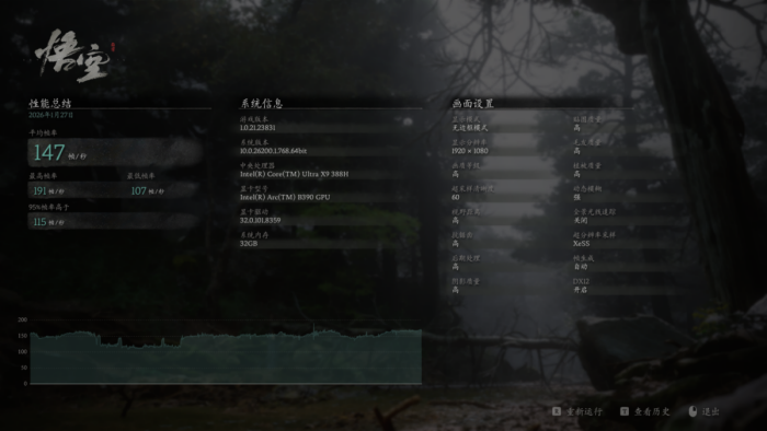 从游戏实测结果不难看出,如果是电竞网游,酷睿UltraX9388H集成的锐炫B390可以轻松应对,妥妥的电竞级帧数,即使提高画质也不会有明显的卡顿。3A游戏方面,如果是《古墓丽影:暗影》之类的老游戏,那么即使在1080P高画质设定下也能有百帧上下的平均帧数;提升至2K分辨率,高画质设定也能够在60帧左右,甚至更高。